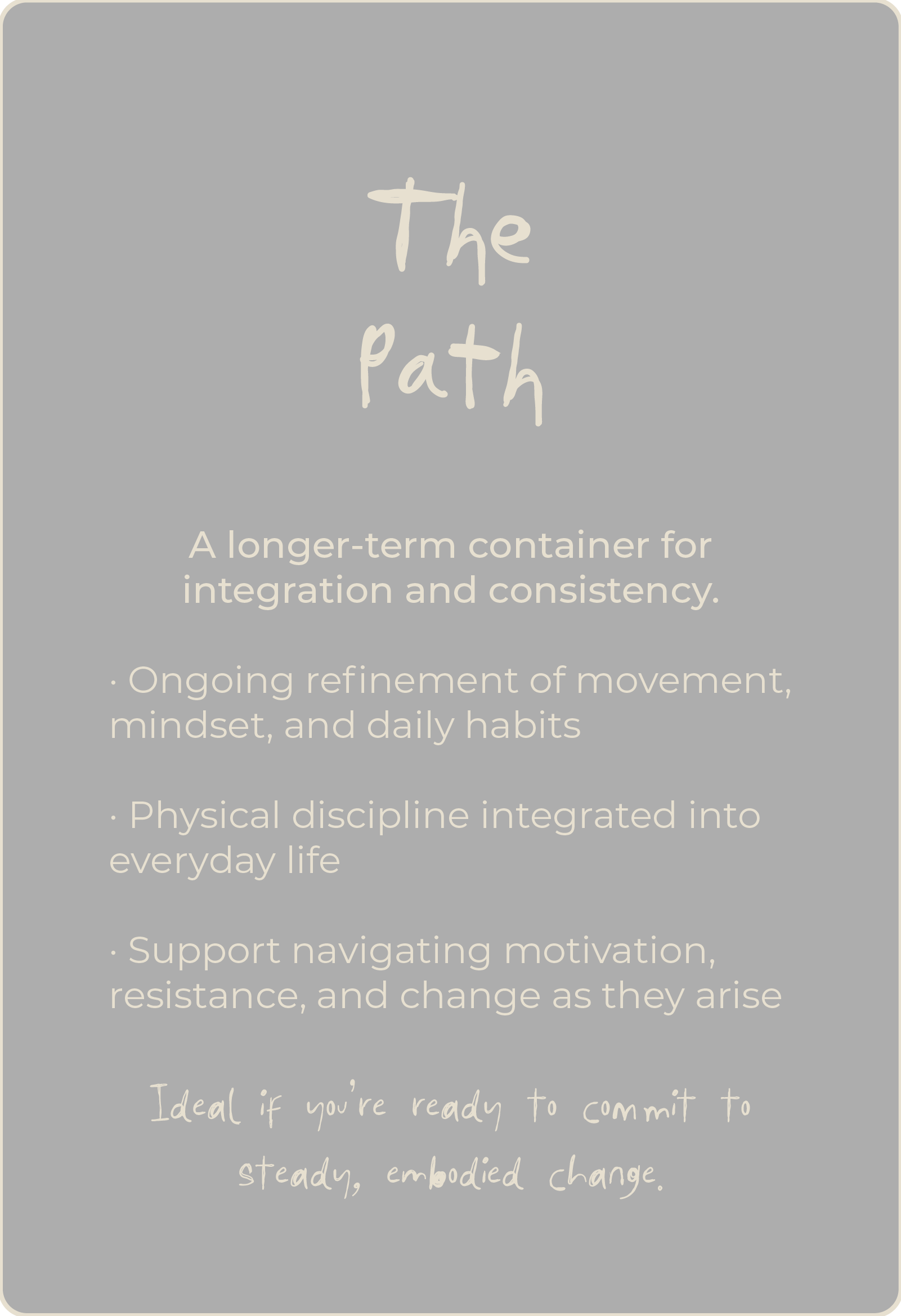 It’s about paying attention to your own journey - how you move, why you repeat patterns and what brings you back to yourself.
